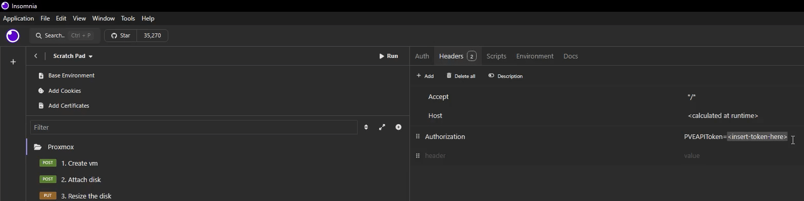 - Use Proxmox API with Insomnia API Client to programattically create VMs